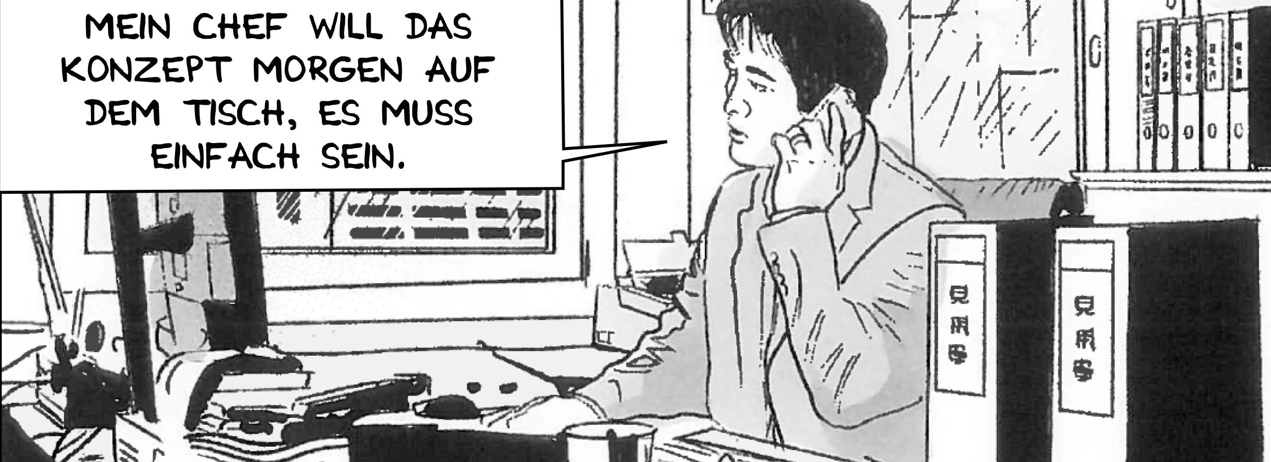 Der Comic ist in zwei Teile unterteilt. Im Zentrum steht ein Traum über einen Wal. der schliesslich die Idee zum Film hervorruft. Dieser Abschnitt der Story ist farbig gestaltet. Der Protagonist zeichnet im Anschluss eine Art Storyboard des Films. Dieser Teil ist schwarz weiss umgesetzt und in einem eigentlichen «Manga-Look» umgesetzt.
