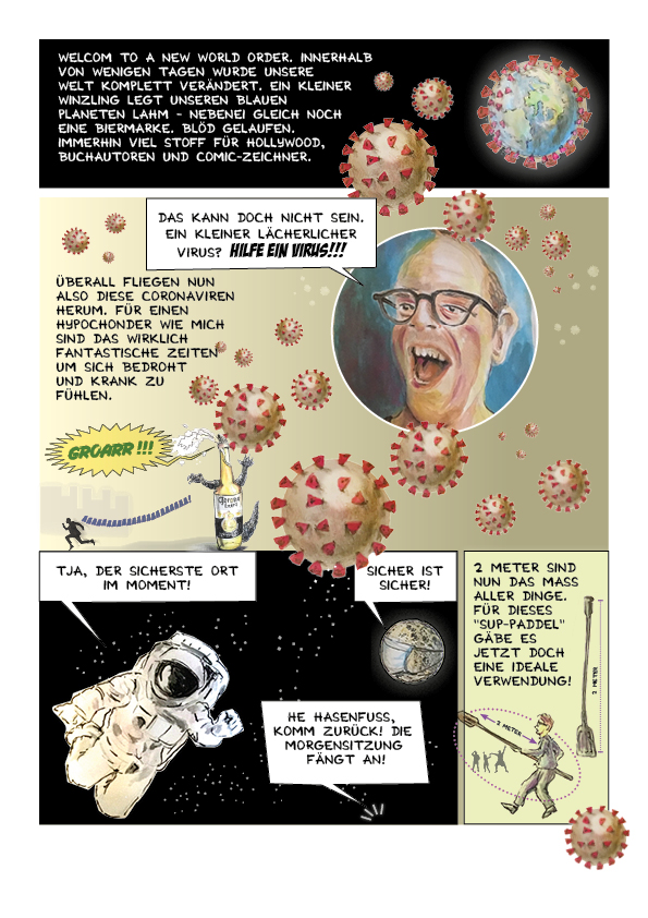 Während dem Home-Office mitten in der Corona Pandemie entstandener Comic über den Alltag im Lock-Down. Die Zeichnungen sind analog mittels Guache/Buntstift-Mischtechnik. angefertigt worden. Die Geschichte illustriert einen Familienalltag im ersten Corona-Lockdown.