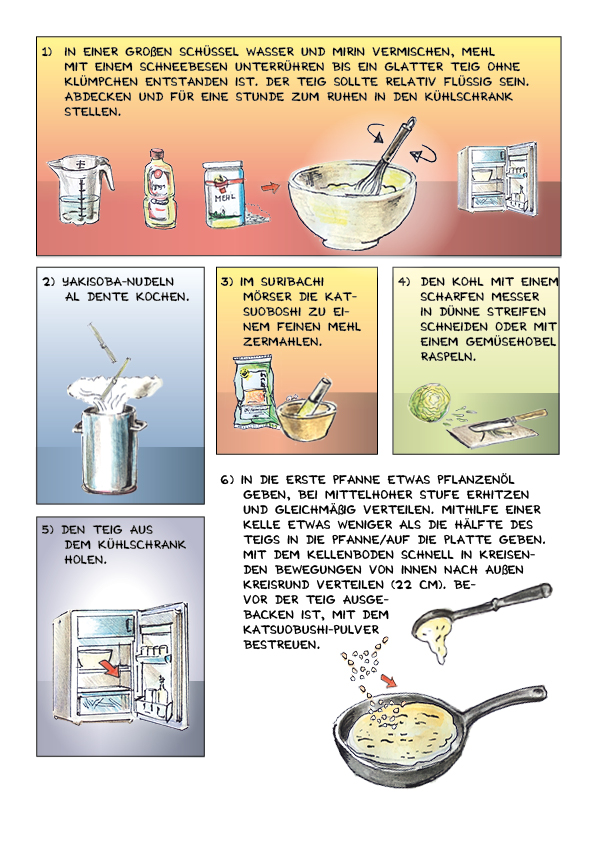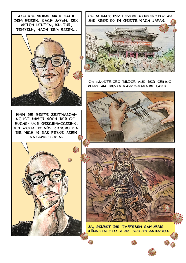 Die Befreiung aus dem «Gefängnis». gelingt mit Fantasiereisen in das ferne Japan und mit dem Kochen eines köstlichen Menüs. Das Rezept ist im Comic zum Nachmachen genau beschrieben. Es entstanden einzelne Bilder in einem Skizzenbuch. Diese wurden anschliessend eingescannt und digital zu einem Comic zusammengefügt.