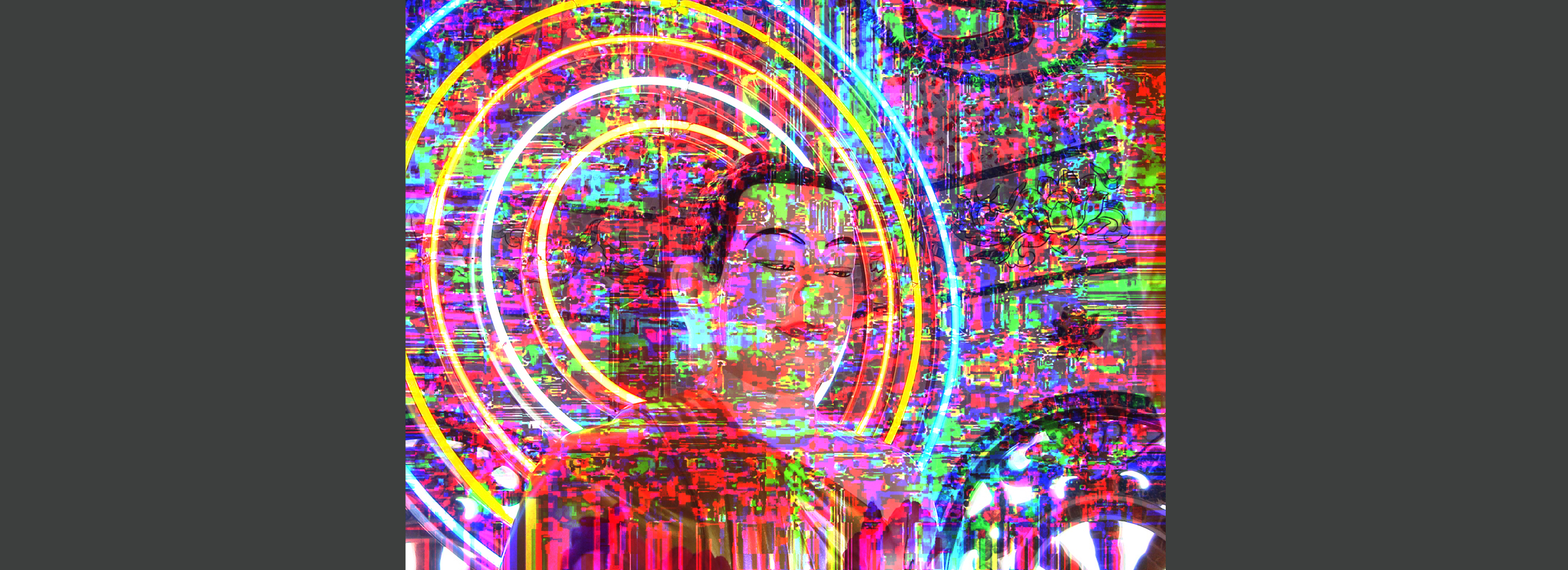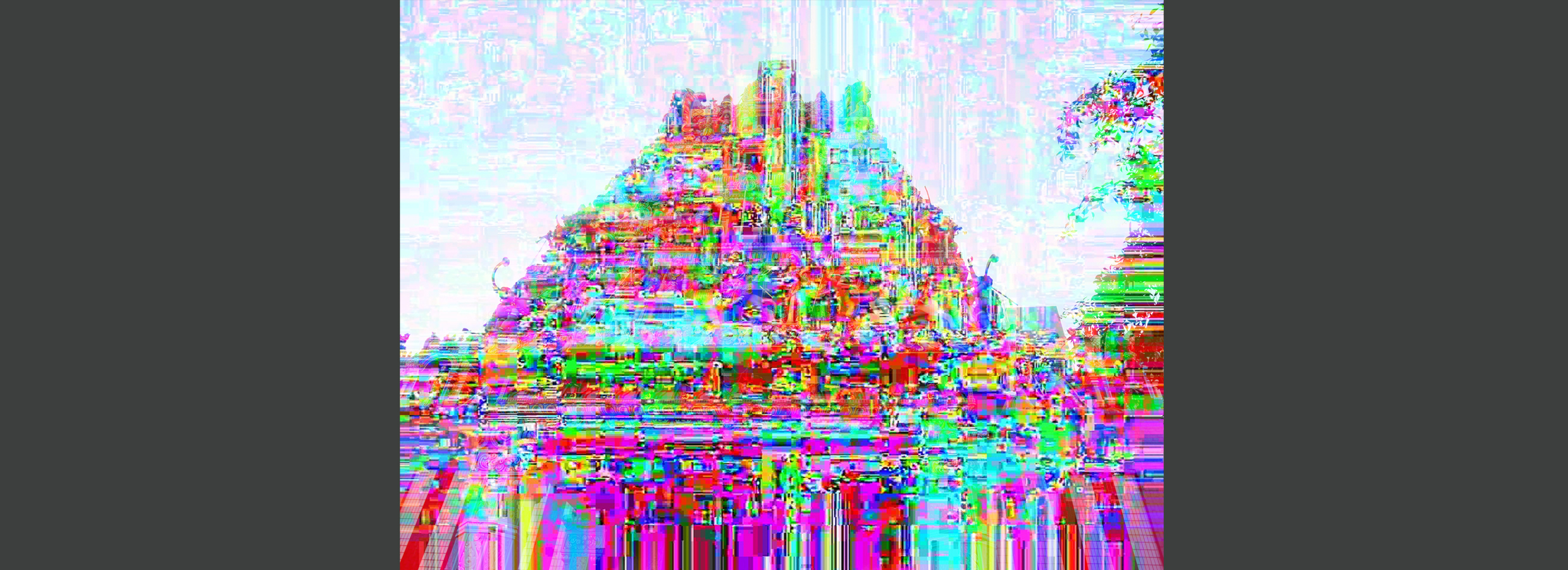 Kunst Holy – Glitch Annäherung an Weltreligionen mittels digitaler Verfremdung. Grundlagen sind Fotografien verschiedener Reisen.
