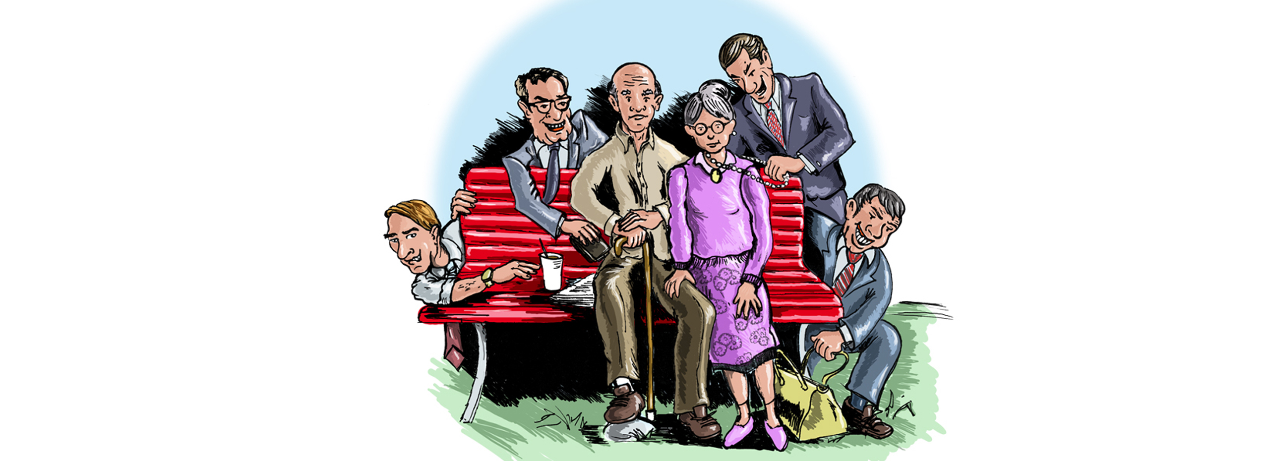 Illustration für die SP-Wähler-Zeitung zum Thema Rentenklau im Rahmen